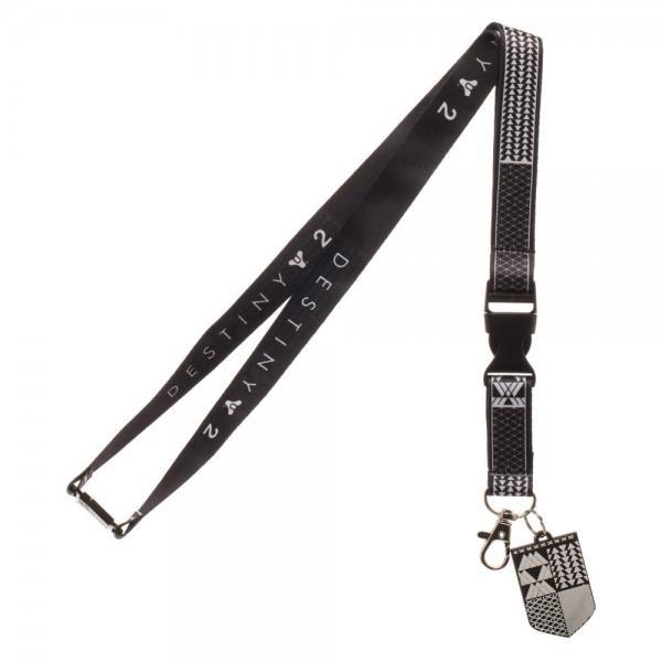 New legends will arise: Are you ready for the fight? Get pumped for the release of Destiny 2 with this reversible, breakaway neck Destiny 2 Lanyard. One side is solid black printed with the Destiny 2 logo in white, and the other is a graphic black-and-white print. The detachable buckled key fob is finished with a black, white, and silver metal Destiny shield tag.