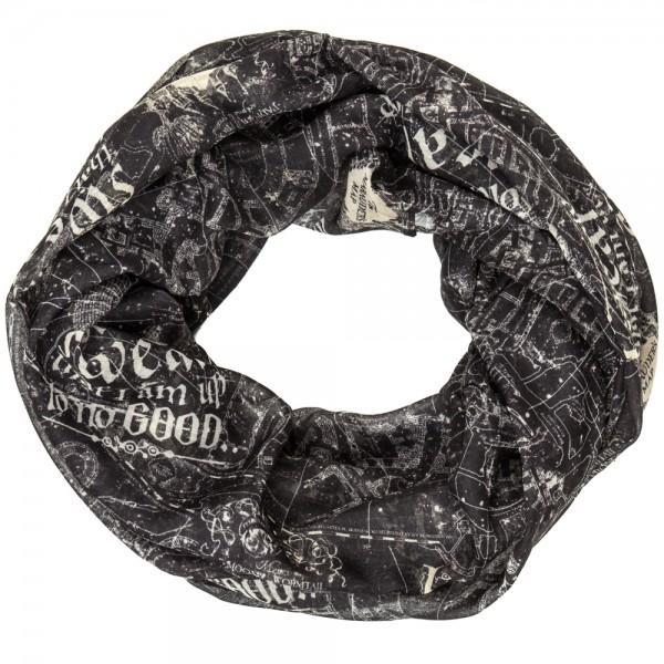I solemnly swear I'm up to no good. This scarf answers the question '___how great would it be if you could wear the Marauder's Map?'__? The scarf features the map's artwork on a black background, and makes it a stylish addition to any Harry Potter fan's wardrobe.