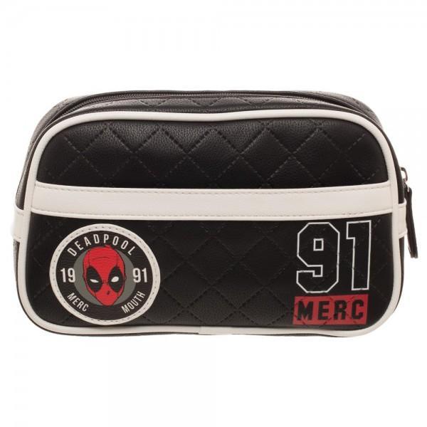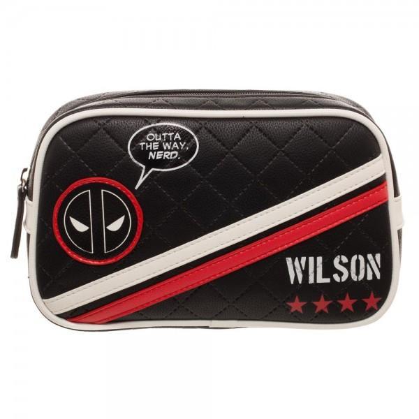 Wade Wilson likes to look pretty too, ya know - Deadpool himself would totally cart this Deadpool Makeup Bag on missions! Featuring a black quilted exterior with red and white trim, two Deadpool appliques, and printed details, it's as stylish as it is practical. Finished with an exterior slip pocket and roomy zippered interior.