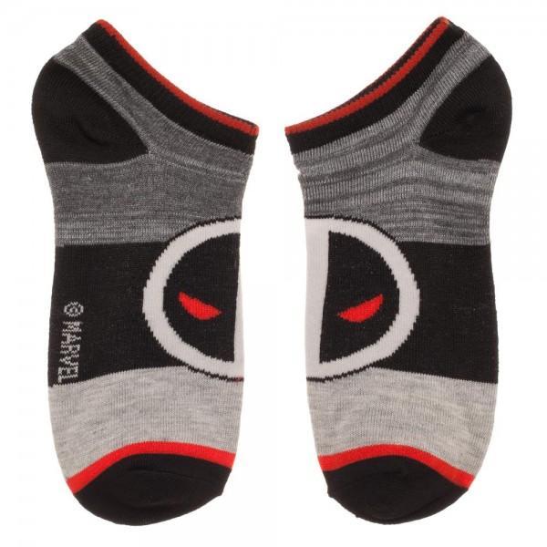 These Marvel Deadpool Ankle Socks 3 Pack are so stylish and easily transportable, we can totally see Deadpool rolling up a pair and tucking it into his utility belt, in case his feet get wet and he needs some dry socks. Even mercs hate wet, cold feet. Three pairs of Deadpool logo-accented socks in black, red, and gray make this a must-have for DP fans.