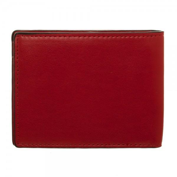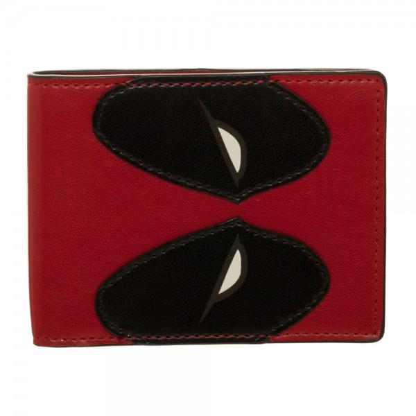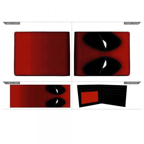 Hey, nerds. Ready to upgrade your wallet to the most badass one in the history of mercs? This red PU leather Marvel Deadpool Big Face Bi-Fold wallet is perfect for stashing your latest bounty winnings in. Deadpool's signature large black eye mask is appliqued on the front, and the wallet opens to reveal 3 horizontal card pockets, 2 vertical card pcokets, 1 full-size currency compartment, and a transparent ID window.