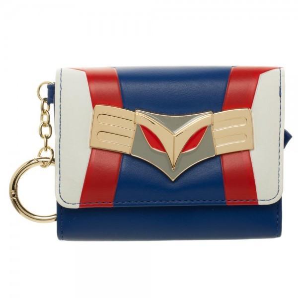Fans of the anime, My Hero Academia, will love this My Hero Academia Juniors Mini Trifold Wallet. A metal My Hero Academia logo badge accents the red, white, and blue appliqued exterior, accented with a gold-tone keyring and back zippered pocket for change. The interior folds out to reveal lots of slots for cards and cash.