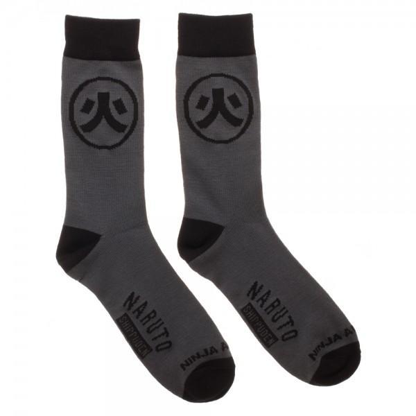 Even ninjas need socks, so snap up this set of Naruto 2 Pack Crew Socks for the Naruto fan in your life. It includes one pair of gray socks with black cuffs, toes, and heels, and one pair of black socks with orange cuffs, toes, and heels, both with different Leaf Ninja characters printed on them.