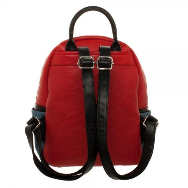 Power up with this fun red PU and blue denim Super Mario Brothers Patches Jrs. Mini Handbag! Appliqued patches of Princess Peach, Mario, Super Star, a Fire Flower, Yoshi, a 1-Up Mushroom, a Boo, and more adorn this cute & practical bag. Features a front zippered pocket and interior zippered pocket for extra organization, plus a top carry handle and adjustable padded shoulder straps.