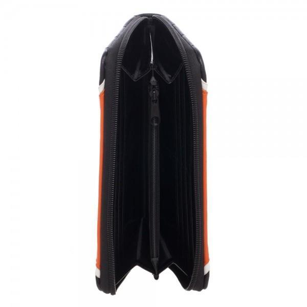 Never be far from the Resistance, at least in spirit, when you've got this Star Wars Rebel Jrs. Zip Around Wallet. The quilted, embossed orange, black, and white PU leather wallet features the Rebellion symbol on one side and a metal Star Wars logo plaque on the other. This zippered wallet includes lots of slots for cards and cash, plus a zippered divider pocket for change.