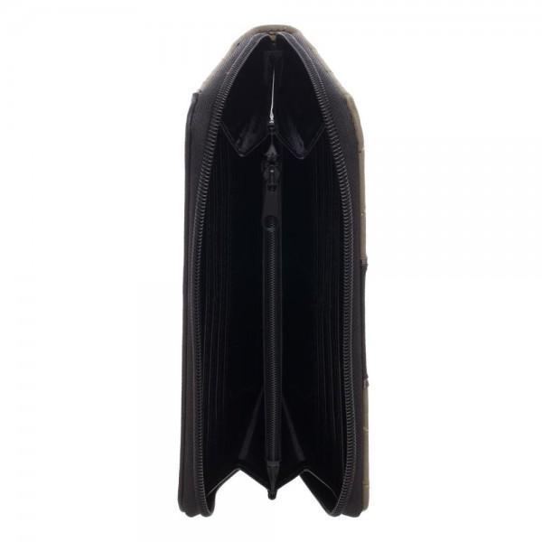 _Zip around closure _Interior card slots and zippered comparment _Metal badge